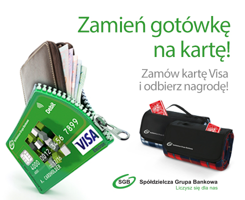 rozpoczęła się kolejna kampania sprzedaży premiowej kart Visa. Promocją objęte są karty Visa debetowe i kredytowe. Dla osób, które w okresie promocji, tj. od dnia 01.04.2016r. do 30.04.2016r. złożą wniosek i podpiszą umowę o kartę Visa, a następnie do 16.05.2016 roku dokonają transakcji bezgotówkowej za kwotę minimum 100,00 złotych czeka upominek w postaci zestawu piknikowego – koca i talii kart.