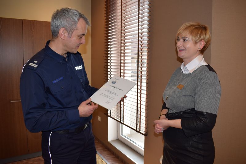 Podziękowanie dla Banku za wsparcie Policji w działaniach profilaktycznych propagujących bezpieczeństwo pieszych na drogach wręczył Zastępca Komendanta Powiatowego podinsp. Tomasz Kąkolewski