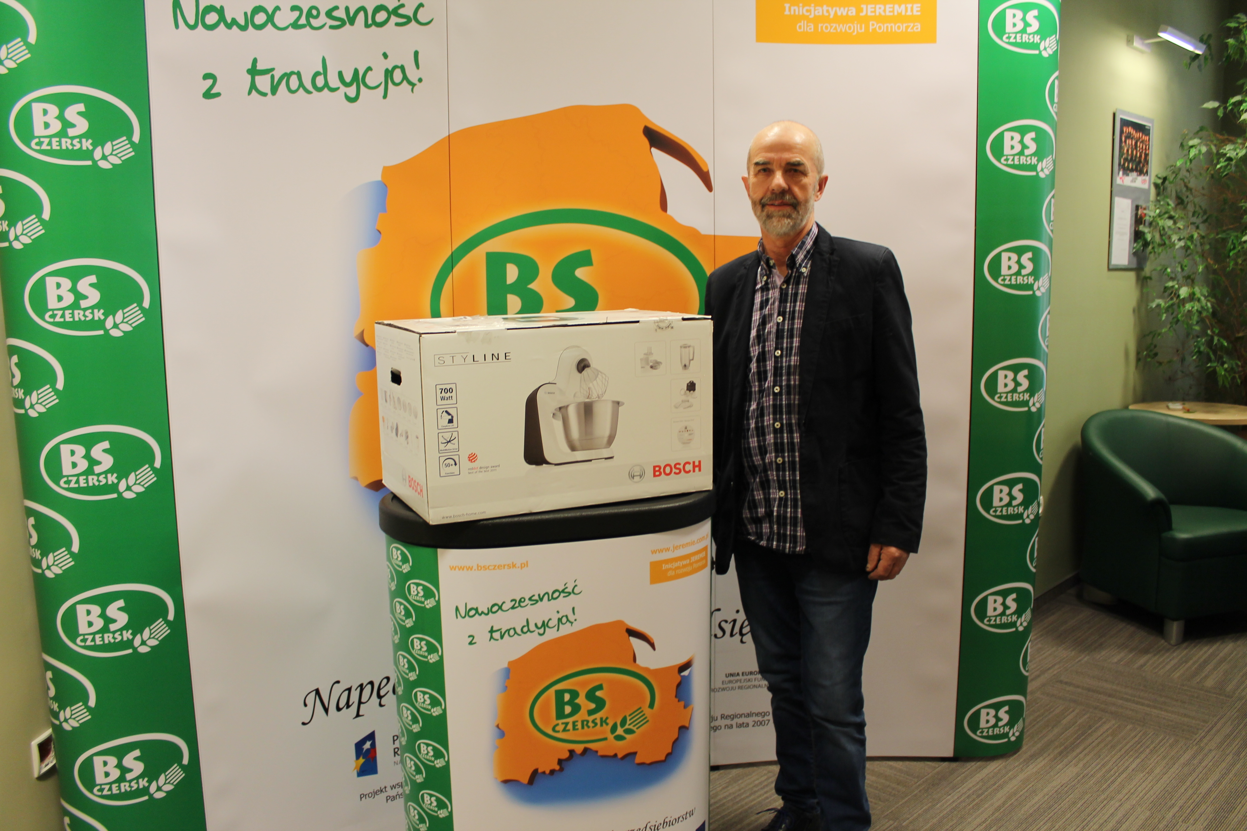 W dniu 30.01.2018r. poznaliśmy wyniki losowania nagród lokat terminowych SGB zorganizowanego przez SGB – Bank dla klientów Spółdzielczej Grupy Bankowej, do której należy również Bank Spółdzielczy w Czersku. Przypominamy, że loteria była prowadzona pod nazwą „Lokata SGB (WIOSNA 2017)” a okres promocyjny trwał od 02.05.2017 r. do 30.06.2017 r. Każdy kto założył w tym okresie w banku należącym do Spółdzielczej Grupy Bankowej lokatę SGB (WIOSNA 2017) na okres 6 miesięcy miał szansę na zdobycie jednej z nagród: samochód osobowy marki Volkswagen, Skuter Romet Motors Router City Line II, aparat cyfrowy Sony Cyber-shot DSC-HX350, Robot kuchenny Bosch MUM52120,Walizkę kabinową Wittchen 56-3A-281. Bank Spółdzielczy w Czersku ufundował nagrodę specjalną: Robot kuchenny Bosch MUM52120, który został rozlosowany tylko wśród klientów naszego Banku. Laureatem losowania nagród został Pan Andrzej Wycinka, który dnia 06.03.2018r. odebrał swoją nagrodę.p>
