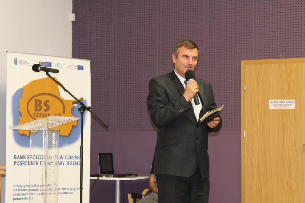 Do udziału w konferencji zostali zaproszeni Przedstawiciele Urzędu Marszałkowskiego, Urzędu Miasta i Gminy Chojnice, Banku Gospodarstwa Krajowego, Powiatowego Urzędu Pracy, organizacji „Pracodawcy Pomorza” oraz partner Banku Spółdzielczego w Czersku Pomorski Regionalny Fundusz Poręczeń Kredytowych Sp. z o. o., którzy w swoich wystąpieniach mówili o perspektywach i możliwościach dla mikro- i małych przedsiębiorstw z terenu Powiatu Chojnickiego. Obecny na spotkaniu Grzegorz Mocarski (Zastępca Dyrektora Departamentu Rozwoju Gospodarczego Urzędu Marszałkowskiego Województwa Pomorskiego), wspomniał, że gmina wiejska Chojnice i gmina Czersk, znajdują się na wojewódzkiej mapie obszarów słabych strukturalnie, do których to w pierwszej kolejności ma trafić wsparcie ze środków unijnych. O sposobach rozdysponowywania funduszy unijnych w ramach Regionalnych Programów Operacyjnych opowiedział Dariusz Wieloch(Zastępca Dyrektora Departamentu Instrumentów Inżynierii Finansowej Banku Gospodarstwa Krajowego). Pozytywnie ocenili efekty kilkuletniej współpracy z wieloma Pośrednikami Finansowymi (w tym Banku Spółdzielczego w Czersku i Pomorskiego Regionalnego Funduszu Poręczeń Kredytowych), którzy cały czas wspierają finansowo pomorskich przedsiębiorców. Dane statystyczne są imponujące. Od 2010 roku z bogatej oferty unijnych kredytów i poręczeń skorzystało ponad 3600 firm. O tym, jak ważną rolę w ogólnym rozwoju społeczno-gospodarczym powiatu chojnickiego pełnią lokalne mikro- i małe podmioty gospodarcze, wiedzą dobrze Starosta Powiatu Chojnickiego Stanisław Skaja oraz Burmistrz Miasta Chojnice Arseniusz Finster, którzy podkreślali ten fakt w swoich wystąpieniach. W trakcie spotkania podziękowali przybyłym przedsiębiorcom za ich codzienny trud, a także za stwarzane przez nich miejsca pracy. Ponadto do tworzenia nowych stanowisk, w tym także aktywizacji bezrobotnych poprzez korzystanie z programów stażowych i interwencyjnych, zachęcał również Wojciech Adamowicz (Dyrektor Powiatowego Urząd Pracy w Chojnicach). Józef Kołak wystąpił reprezentując organizację „Pracodawców Pomorza” omówił profil działania organizacji i możliwości wsparcia przedsiębiorców na terenie powiatu chojnickiego.